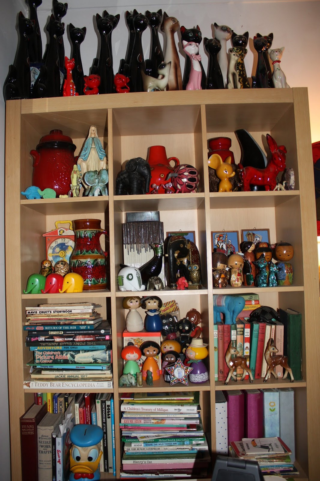 Apologies no listing tomorrow as planned , last week i got some sort of cold virus that completely wiped me out and i didnt want to do anything but sleep ....i think though that now sewing is actually my real job i need to be a bit more disciplined, as when i was working in the hotel i would have gone to work no matter how awfull i felt but being at home sleeping on the sofa was much more appealing than sewing :) rich who hasnt worked for over 2 yrs and his only job he has to do is to empty the dishwasher , decided as i was so poorly he could be my assistant and cut the things out so then i could sew them ....err no , im poorly i cant do anything !!!! ...anyway the listing next saturday will be very coat based as ive not been feeling very inventive :) ....a pic of next to my tv , yes i know theres rather alot of dust but every single surface in my living room is covered with colourful stuff ive collected and theres really not enough time in life to pick it all up and dust it :) xxxx