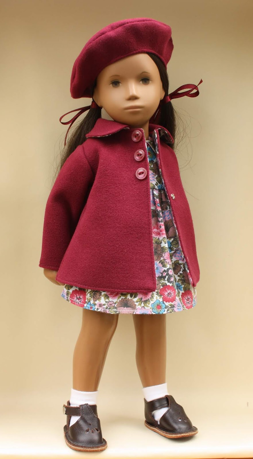 Jacket made from recycled charcoal wool fabric , lined to match the dress and matching beret , dress made from new spotty fabric , underneath are knickers edged with lace ....
